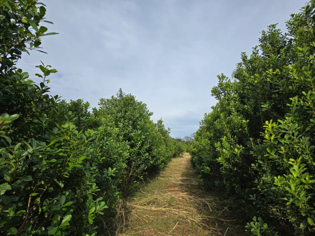 Los cultivos se desarrollan en más de cien hectáreas, de las cuales aproximadamente la mitad se mantiene como monte virgen. Los yerbales, rodeados de selva, recrean las condiciones naturales de la Ilex paraguariensis, una especie nativa. “Son yerbitas contentas, que se sienten como en el monte”, dice, convencido de que producir sin venenos es también integrar árboles y biodiversidad al sistema.