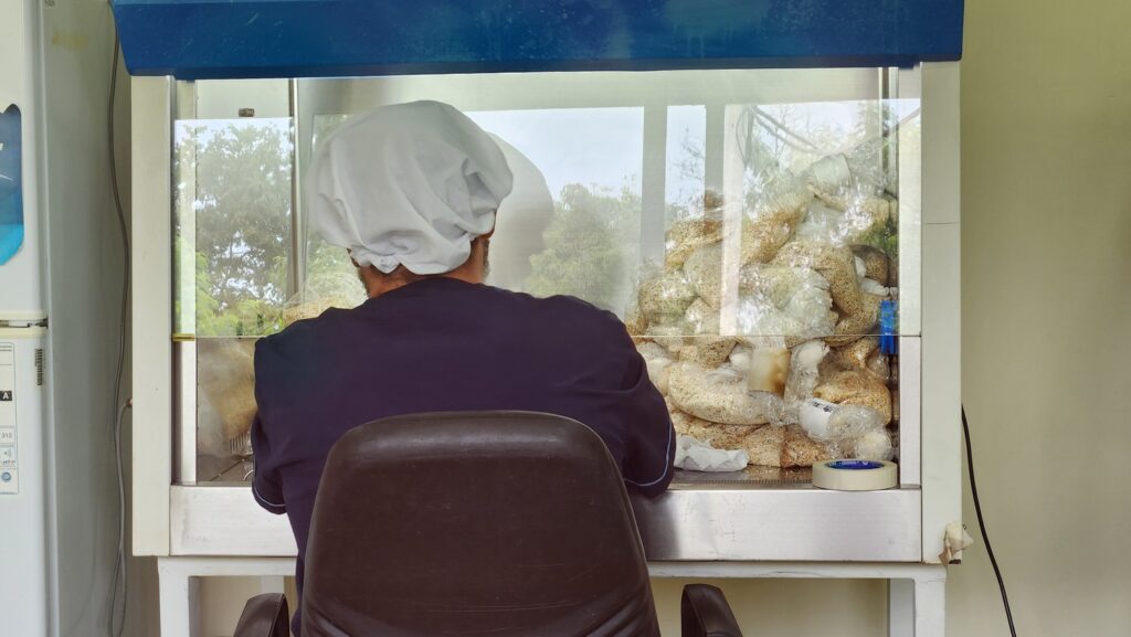 En el laboratorio, el proceso implica multiplicar el hongo en distintas condiciones para obtener biomasa —es decir, grandes cantidades del organismo— que luego pueden aplicarse en el campo. Puede cultivarse en medios líquidos o sólidos, incluso en sustratos accesibles como arroz o cascarilla, lo que facilita su producción.