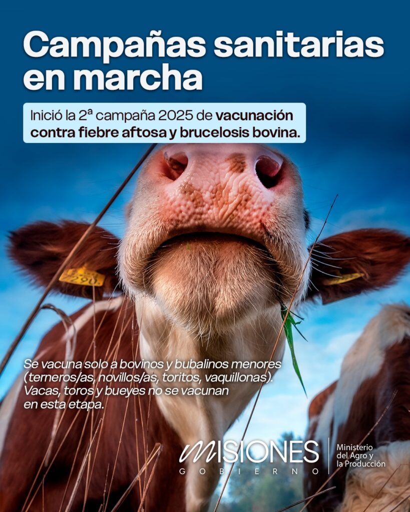 La segunda campaña 2025 de vacunación contra la fiebre aftosa y la brucelosis bovina comenzó en Misiones, con un despliegue territorial destinado a fortalecer la sanidad animal y acompañar el crecimiento de la producción provincial. El operativo apunta a mantener la protección del rodeo frente a enfermedades de alto impacto sanitario y económico.