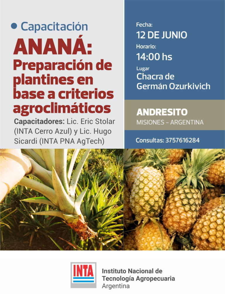 El INTA organiza dos capacitaciones prácticas sobre plantines de ananá en Andresito y Jardín América, dirigidas a productores locales. Lideradas por Cristian Eric Stolar y Hugo Sicardi, las jornadas buscan mejorar la selección y el cuidado de plantines para asegurar la calidad de los frutos.