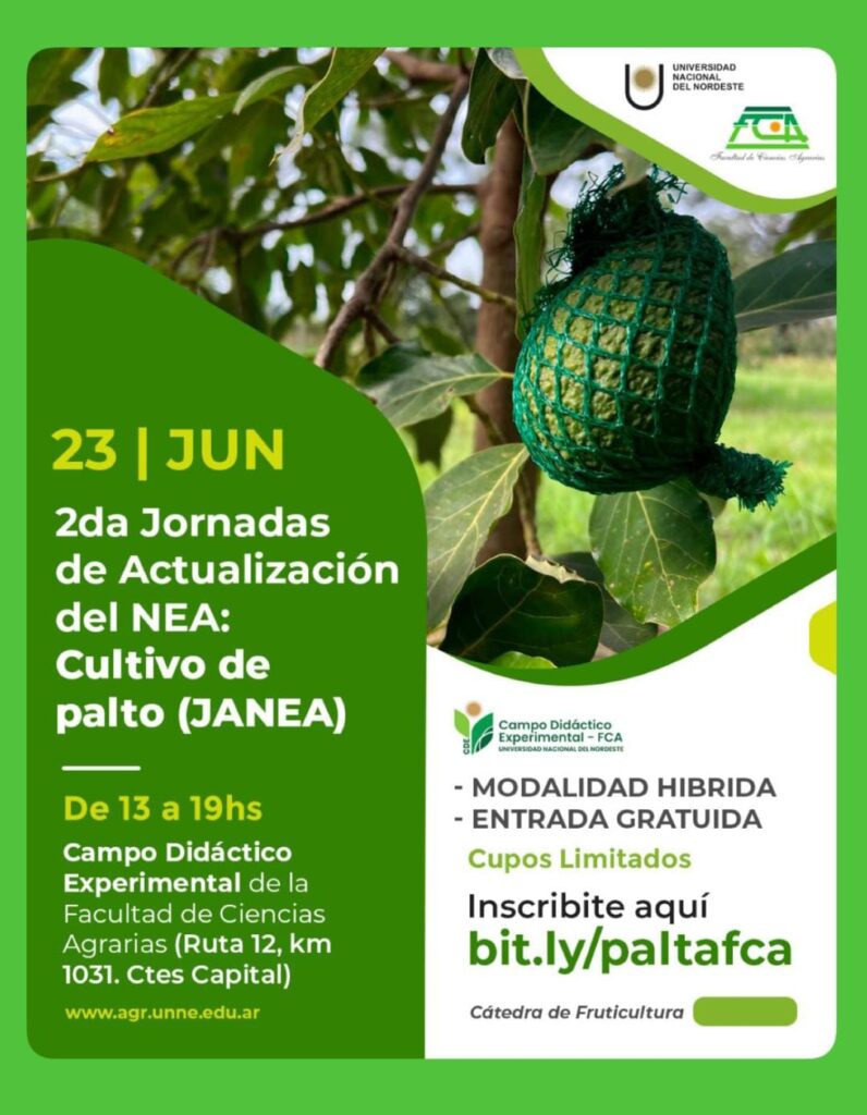 La segunda jornada de actualización para el NEA se llevará a cabo el 23 de junio, de 13:00 a 19:30 horas, en el Campo Didáctico Experimental de la Facultad de Ciencias Agrarias (Ruta 12, km 1031, Corrientes Capital). La modalidad será híbrida y la entrada es gratuita, pero debido a la cantidad limitada de cupos, quienes deseen participar deben inscribirse previamente a través de este link.