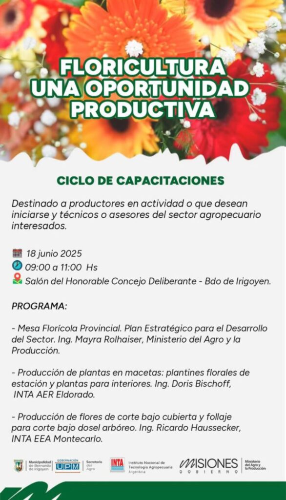 El 13 de junio, de 8:30 a 10:30 horas, se realizará una jornada destinada a productores activos, quienes deseen iniciarse en la actividad, técnicos y asesores del sector agropecuario interesados. La actividad tendrá lugar en la Casa de la Familia Kolping, ubicada en calle Las Dalias y Los Gladiolos, Barrio Jardín, Capioví.