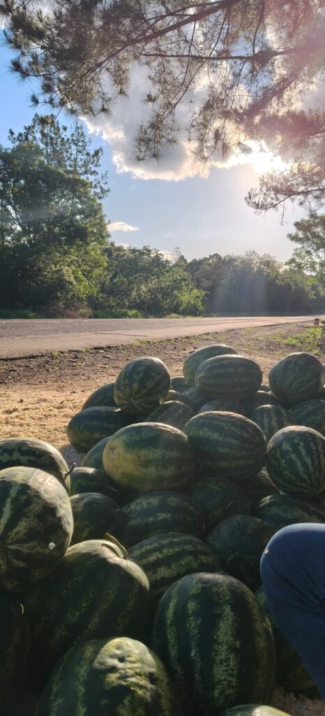 Frente a esa situación, los productores debieron vender más a mayoristas, quienes luego distribuyeron la fruta en distintos puntos de la provincia. En cuanto a precios, Lombardo detalló que “una sandía hoy arranca en 5.000 pesos y llega hasta 10.000 la más grande”, valores que se mantienen relativamente estables entre venta directa y reventa.