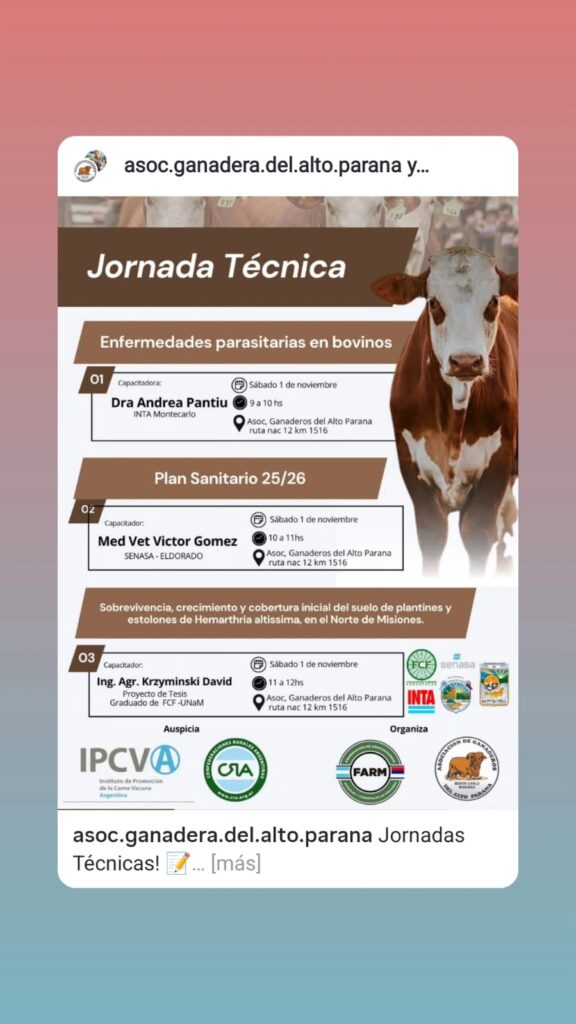 Durante esas jornadas se abordarán temas vinculados con la sanidad animal, el control parasitario, la caravana electrónica implementada por Senasa y el plan de vacunación 2026-2027 contra la fiebre aftosa. También se tratarán cuestiones de nutrición y manejo de forrajes. “Buscamos que los productores puedan acceder a información actualizada y fortalecer vínculos con las instituciones”, indicó Anders.