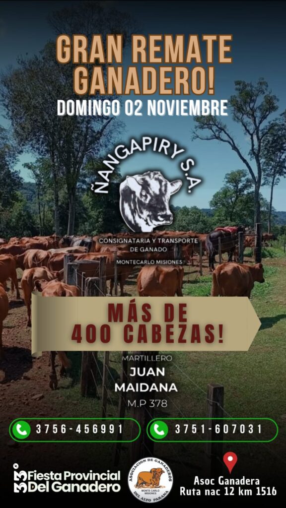 Finalmente, anticipó que en Montecarlo avanza la reapertura de un frigorífico local, considerado clave para fortalecer la cadena cárnica de la región. “Es una necesidad para seguir creciendo como polo ganadero provincial”, concluyó.