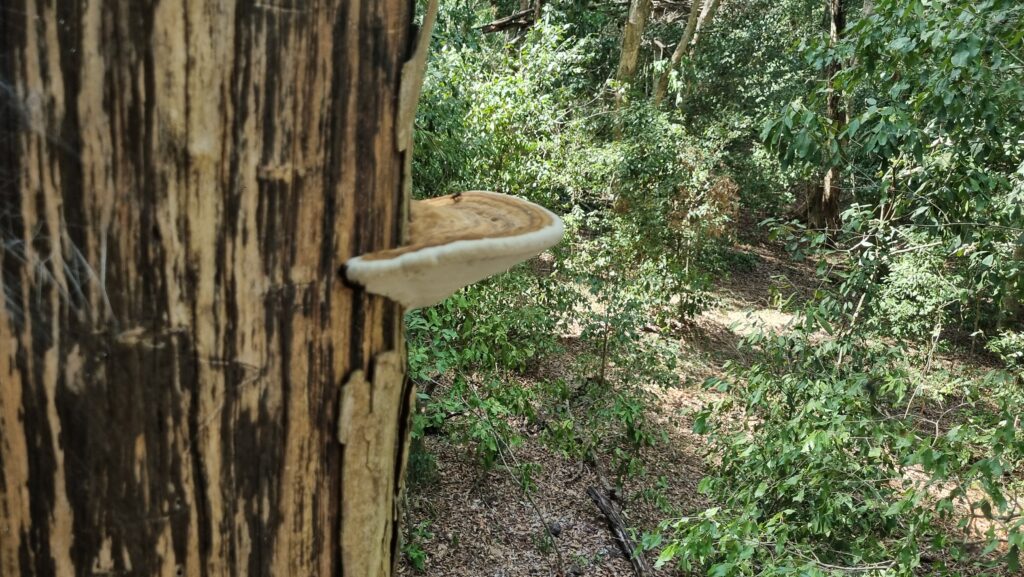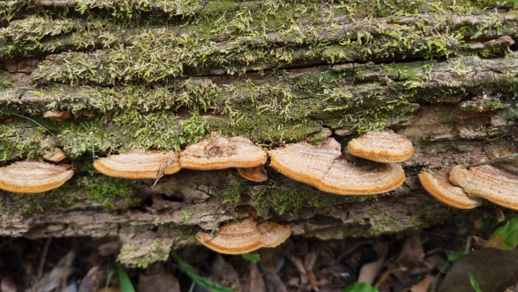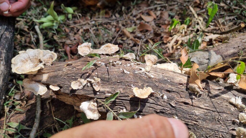 Los Trametes son hongos que crecen sobre troncos y ramas muertas, y se encargan de descomponer la madera. Al hacerlo producen lo que se llama pudrición blanca, porque degradan la lignina (una sustancia dura de la madera), dejando la madera más clara, blanda y fibrosa.