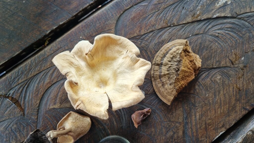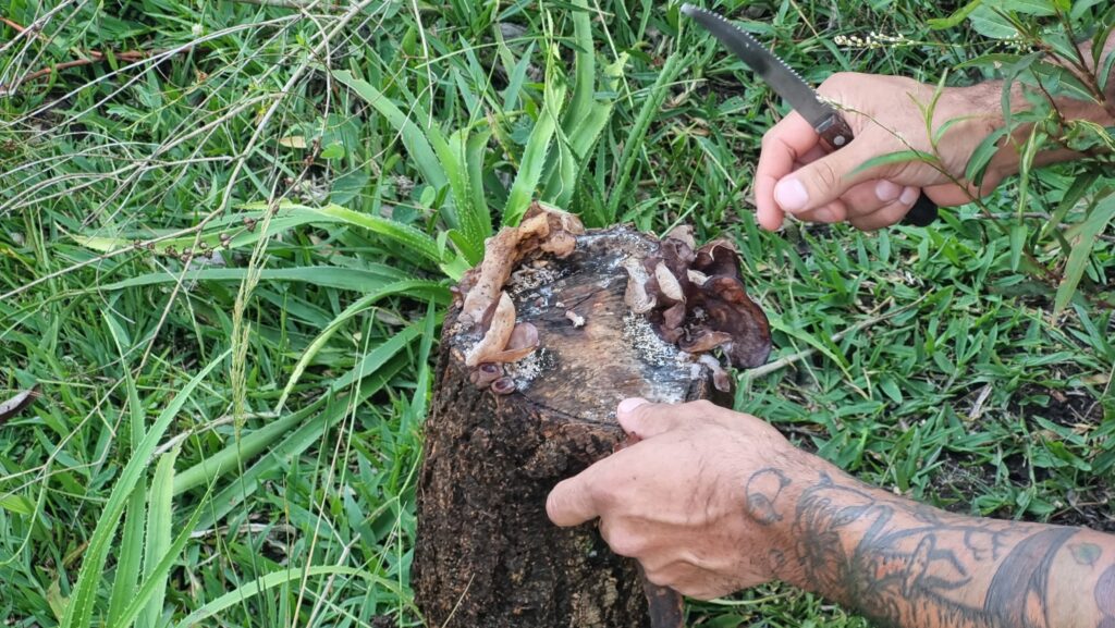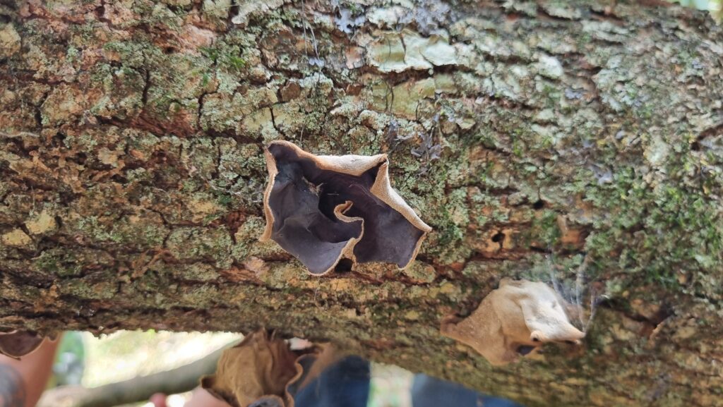 Los Auricularia son hongos que crecen sobre madera muerta o troncos húmedos, especialmente después de lluvias. Tienen una forma muy particular: son gelatinosos y con aspecto de oreja, por eso en muchos lugares se los conoce como “oreja de árbol”.