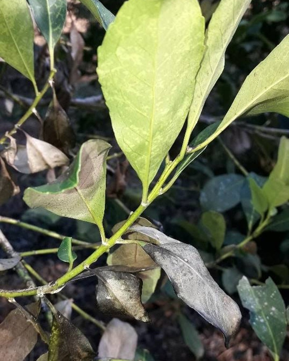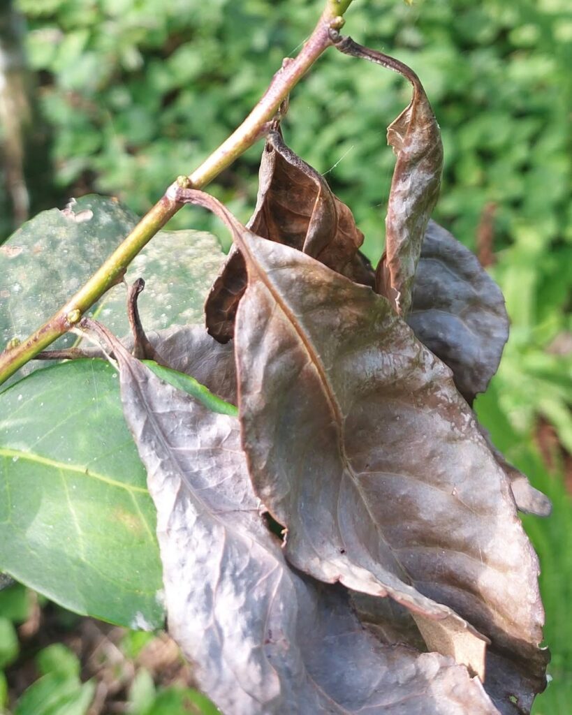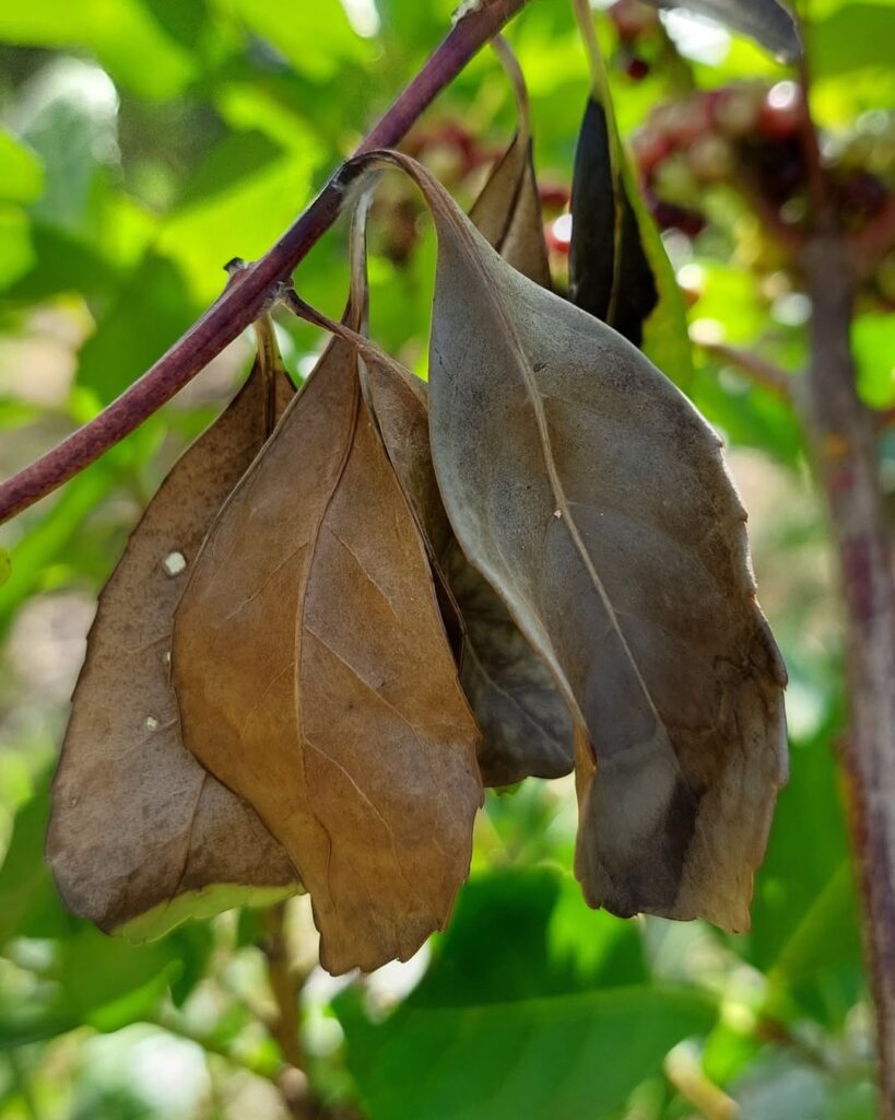 La investigadora Delia Dummel, especialista en fitopatología del INTA Montecarlo, explicó que la primera señal es la presencia de un micelio blanco y fino que envuelve brotes y ramas. Según describió, “ese hilo blanquecino es el primer síntoma. Luego la hoja se seca, pero queda adherida al tallo como si estuviera pegada por una tela”. La permanencia de la hoja seca, señaló, es una de las características que permite diferenciar rápidamente esta enfermedad de otros daños.